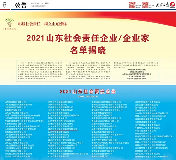 濰坊農(nóng)創(chuàng)集團榮獲“2021山東社會責任企業(yè)”稱號